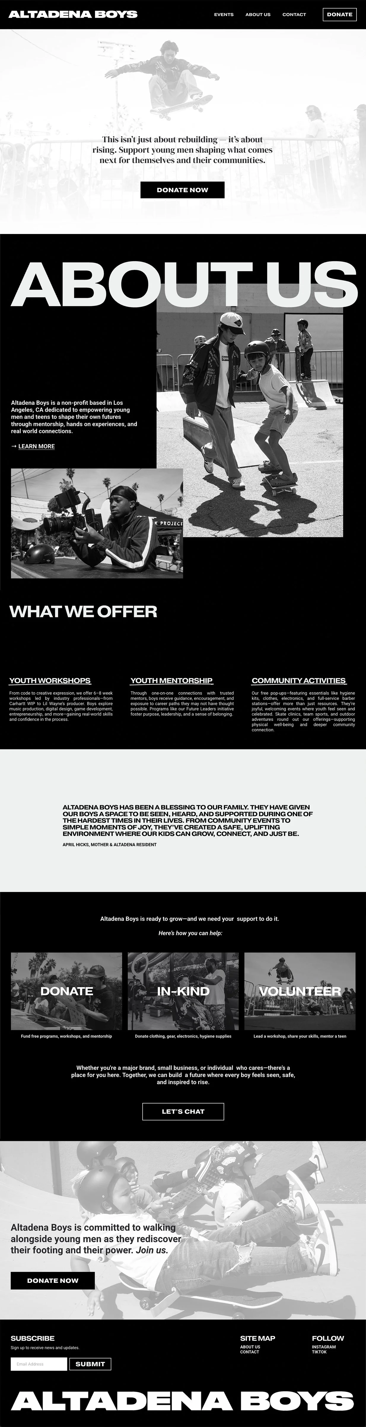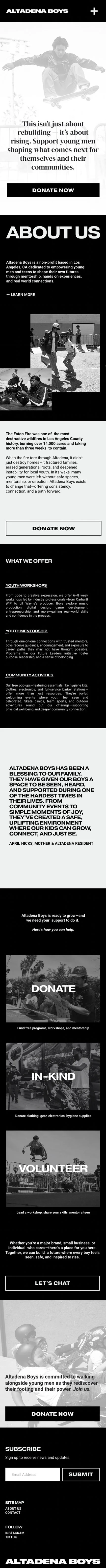 Altadena Boys is a non-profit based in Los Angeles, CA dedicated to empowering young men and teens to shape their own futures through mentorship, hands on experiences, and real world connections.
