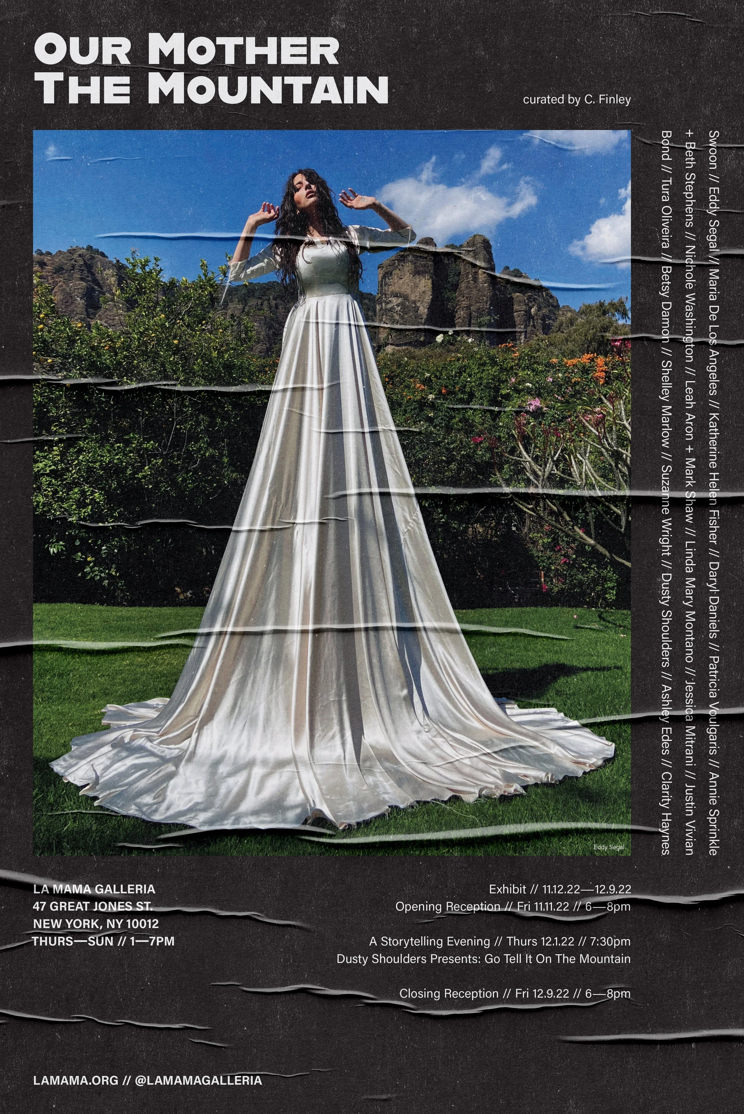 Our Mother The Mountain presented by La MaMa Galleria was a 2022 group exhibition of paintings, sculptures, performance, and video exploring the re-enchantment of art through eco-sexuality, femininity, creativity, and generosity. Dreams, visions, creation myths, spirituality and community are the sources and subject matter for works throughout the show.